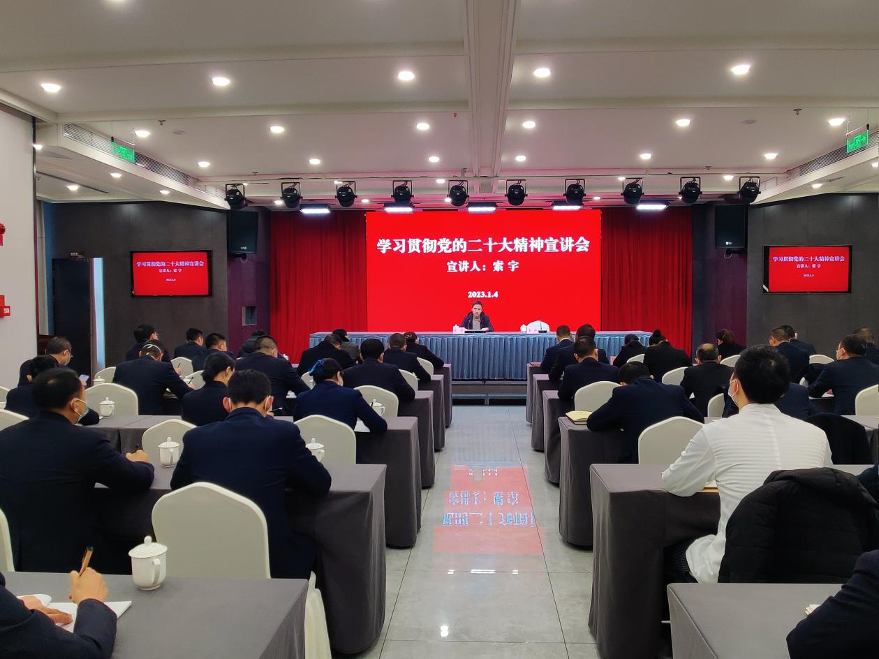 2023年1月4日,市文旅集團黨委委員、財務(wù)總監、集團機關(guān)黨支部書(shū)記索宇到集團旗下子公司酒店管理公司開(kāi)展黨的二十大精神宣講。酒店管理公司下屬企業(yè)江北賓館、恒豐飯店、錦鴻酒店、九個(gè)院子酒店負責人等聆聽(tīng)宣講。