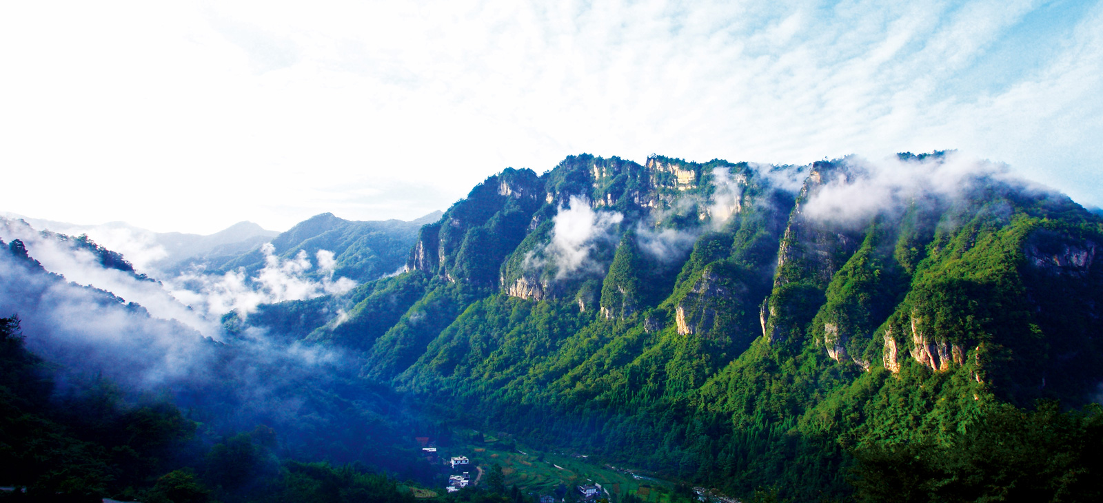 進(jìn)入光霧山旅游景區便可看見(jiàn)一座挺拔秀麗的高山,這就是龍駕山,龍駕山自焦家河畔拔地而起,橫臥在綠水與藍天之間,她常被一層或濃或淡的云霧所纏繞,若隱若現,因此得名“龍駕煙云”。整個(gè)龍駕山高300多米,長(cháng)約5公里,其山形如巨龍的骨駕,可以明顯的分為上、中、下三層,上層高低錯落如鋸齒狀的大小山峰猶如龍的脊骨,中層帶狀綿延的林木如龍身,下層大小十八座山峰如龍須和龍爪。龍駕山有一奇觀(guān),若遇雨后天晴的早晨,太陽(yáng)出來(lái)的時(shí)候,山頂會(huì )出現紅云罩山頂的奇觀(guān),山間云霧飄渺,青山若隱若現,十分神奇壯觀(guān)。當地人說(shuō)這是“佛光”,凡能見(jiàn)到佛光的人就會(huì )增福增壽。其實(shí)這是一種自然現象,是光和霧在適當的條件下形成的彩虹。有人為這一奇觀(guān)曾寫(xiě)下了這樣一首詩(shī):青龍逶迤騰云間,吐霧化彩護龍冠。只因采得天地氣,不歸大海戀桃園。