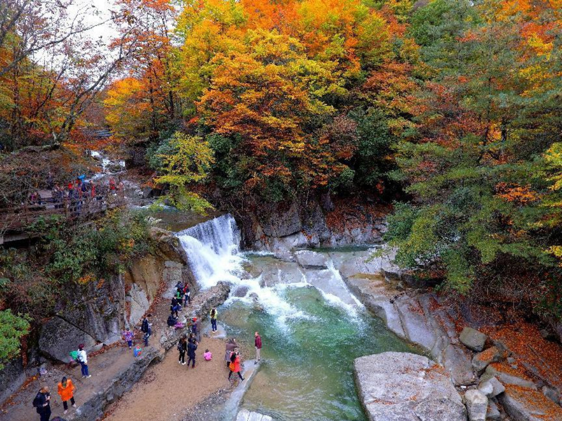 黑熊溝位于香爐山南麓,這里原名叫釣魚(yú)臺,因曾有黑熊出沒(méi),便叫成了黑熊溝。山因水而活,水因山更幽,豐富的森林植被和多姿多態(tài)的水流構成了黑熊溝絢麗多彩的自然景觀(guān),溝內兩岸植被茂密,綠樹(shù)映掩,遮天蔽日,溪河兩岸蒼翠欲滴,七彩倒影與水共流,相互輝映,綠水在叢林中穿行流淌,或聚碧成潭,或驚濤拍岸,或靜靜的流淌,或低吟歌唱,或飛瀑高懸,如錦似緞,流金瀉玉。黑熊溝河床為花崗巖體,經(jīng)千萬(wàn)年水流的沖刷,光潔如玉,五彩繽紛。溫順的淺溪,碧藍如玉的深潭,婀娜多姿的水流,清幽秀雅的自然環(huán)境,令人心曠神怡。黑熊溝一年四季景色各異,展示出她不一樣的韻致。春花,爛漫艷麗,滿(mǎn)山遍野,爭妍斗艷,姹紫嫣紅,勃勃生機;夏樹(shù),綠海蔥濃,林冠翻波,濤聲盈耳,蟬噪鳥(niǎo)鳴,無(wú)際無(wú)涯;秋葉,七彩織錦,煙霞蓋地,五彩斑斕,山河盡染;冬雪,瑞絮飄灑,銀裝素裹,霧凇冰掛,玉樹(shù)瓊花,清純美麗。