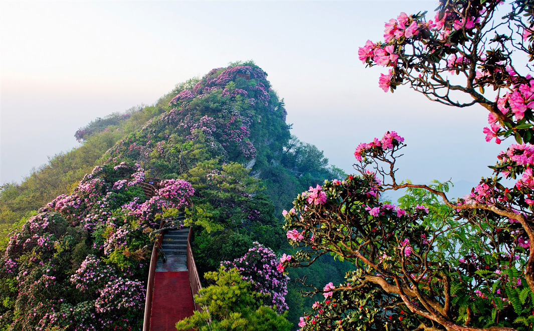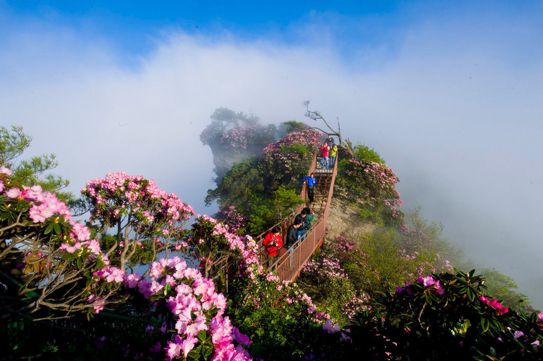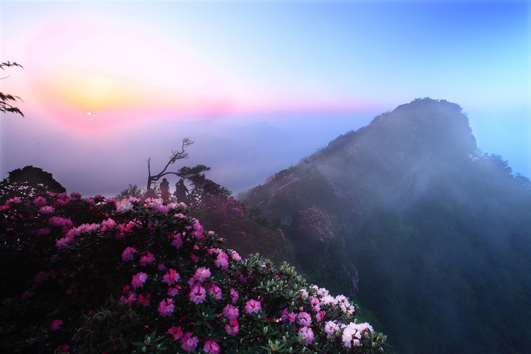 春賞杜鵑是光霧山春季旅游的特色品牌,而香爐山的高山杜鵑則是這一特色品牌中的極品。每年5月,香爐山的云霧與綻放的高山杜鵑如期相約,云嶺花海景象便展露無(wú)遺。綻放在云蒸霧繞的山嶺上的杜鵑花,或傲然而立,或絕壁叢生,或純真素雅,或嬌艷欲滴,爭奇斗艷地匯集成一片花的海洋。云嶺花海是光霧山一道絕美景致,它掀起了巴山的紅蓋頭,帶給了世界一個(gè)驚喜。