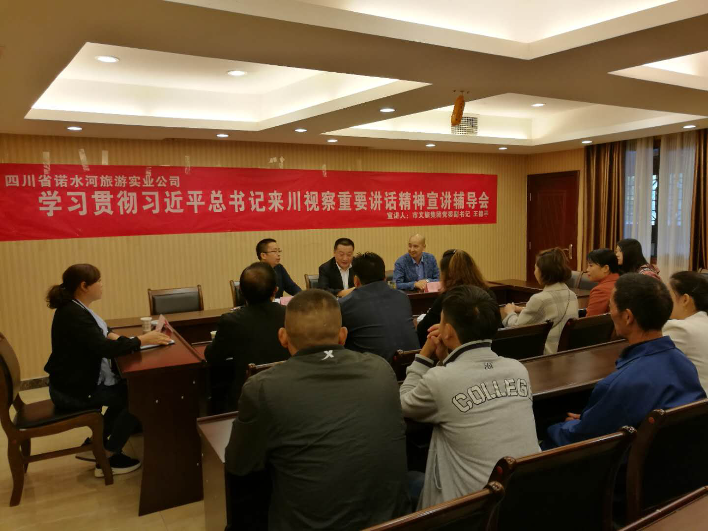五、開(kāi)展宣講輔導。集團領(lǐng)導堅持先學(xué)一步、深學(xué)一層,以上率下、引領(lǐng)示范。集團黨委書(shū)記、董事長(cháng)李玉甫不僅在黨委會(huì )上親自主持傳達學(xué)習,而且在主題黨日活動(dòng)上進(jìn)行宣傳輔導。集團黨委副書(shū)記、總經(jīng)理王德平,深入到光霧山旅游公司、諾水河旅游公司進(jìn)行宣講輔導。通過(guò)宣傳輔導,黨員干部的思想統一到了習總書(shū)記對四川工作系列重要指示和省委、市委全會(huì )精神上來(lái)。