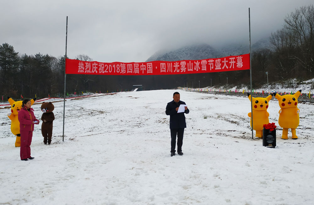 12月15日,2018第四屆中國-四川光霧山冰雪節在米倉山旅游景區大壩滑雪場(chǎng)正式開(kāi)幕,巴中市文化旅游發(fā)展集團有限公司黨委副書(shū)記、總經(jīng)理王德平出席開(kāi)幕式并致辭。