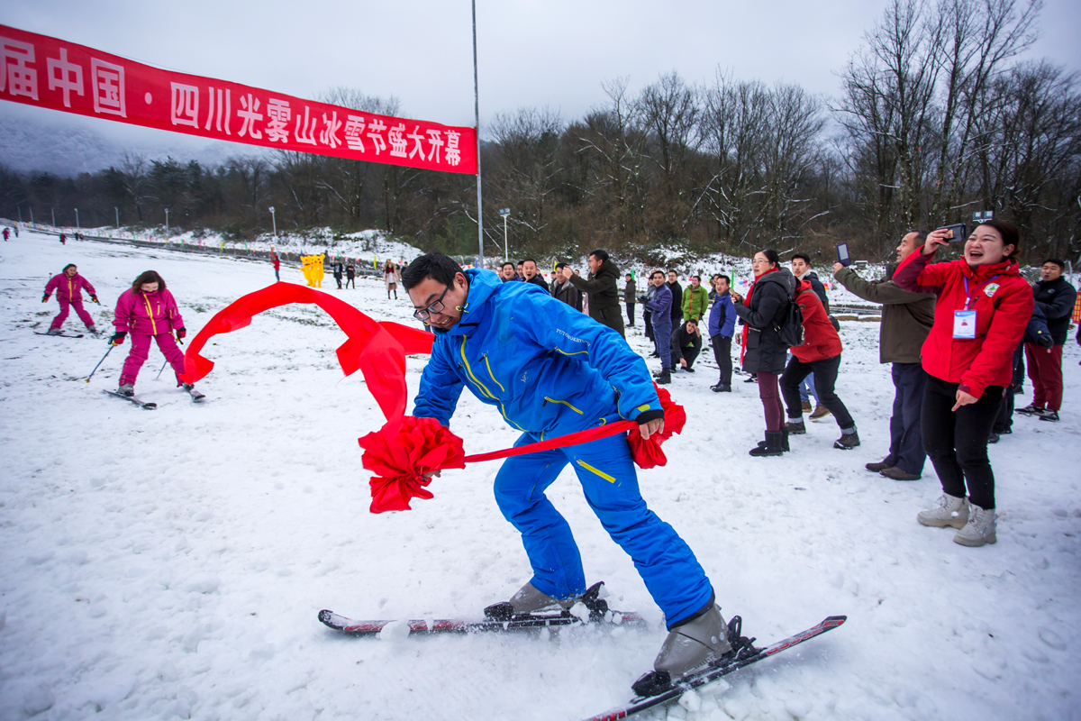 開(kāi)幕式現場(chǎng)還組織開(kāi)展了紅綢爭霸賽、雪地速滑等趣味活動(dòng),吸引了幾十名游客踴躍參與,活動(dòng)決出了各類(lèi)獎項,并分發(fā)了獎品。在歡聲笑語(yǔ)中,光霧山冰雪節開(kāi)幕式活動(dòng)推向了高潮。(圖:徐劉洋)