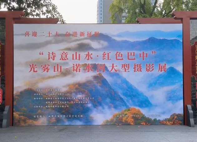 2022年9月30日下午,喜迎二十大——“詩(shī)意山水 紅色巴中”光霧山諾水河大型攝影展在成都市寬窄巷子東廣場(chǎng)盛大開(kāi)幕。本次攝影展由巴中市文旅集團主辦,成都市青羊區攝影家協(xié)會(huì )承辦,將用攝影展的形式集中呈現四川光霧山國際紅葉節等巴中核心文旅資源...